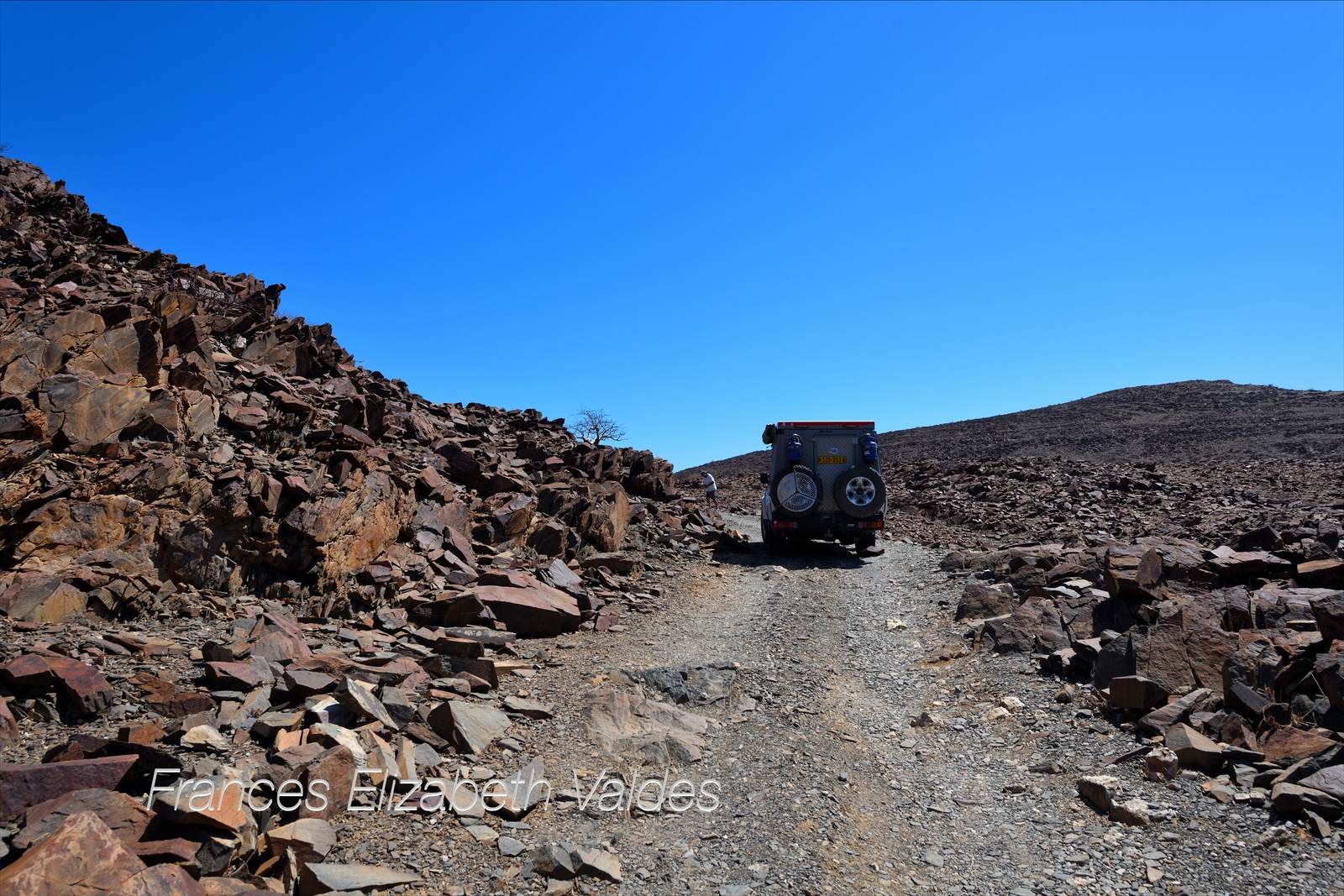 Divorce Pass leads from the Doros Crater Conservancy into the Ugab Valley. It is the second most difficult track in Namibia. It features in the World’s Most Dangerous Road website. Its difficulty is well known, and some hire companies do not allow you to drive their hire cars through it because it is so treacherous. Bushlore have a more pragmatic approach – if you louse up on it, you pay!