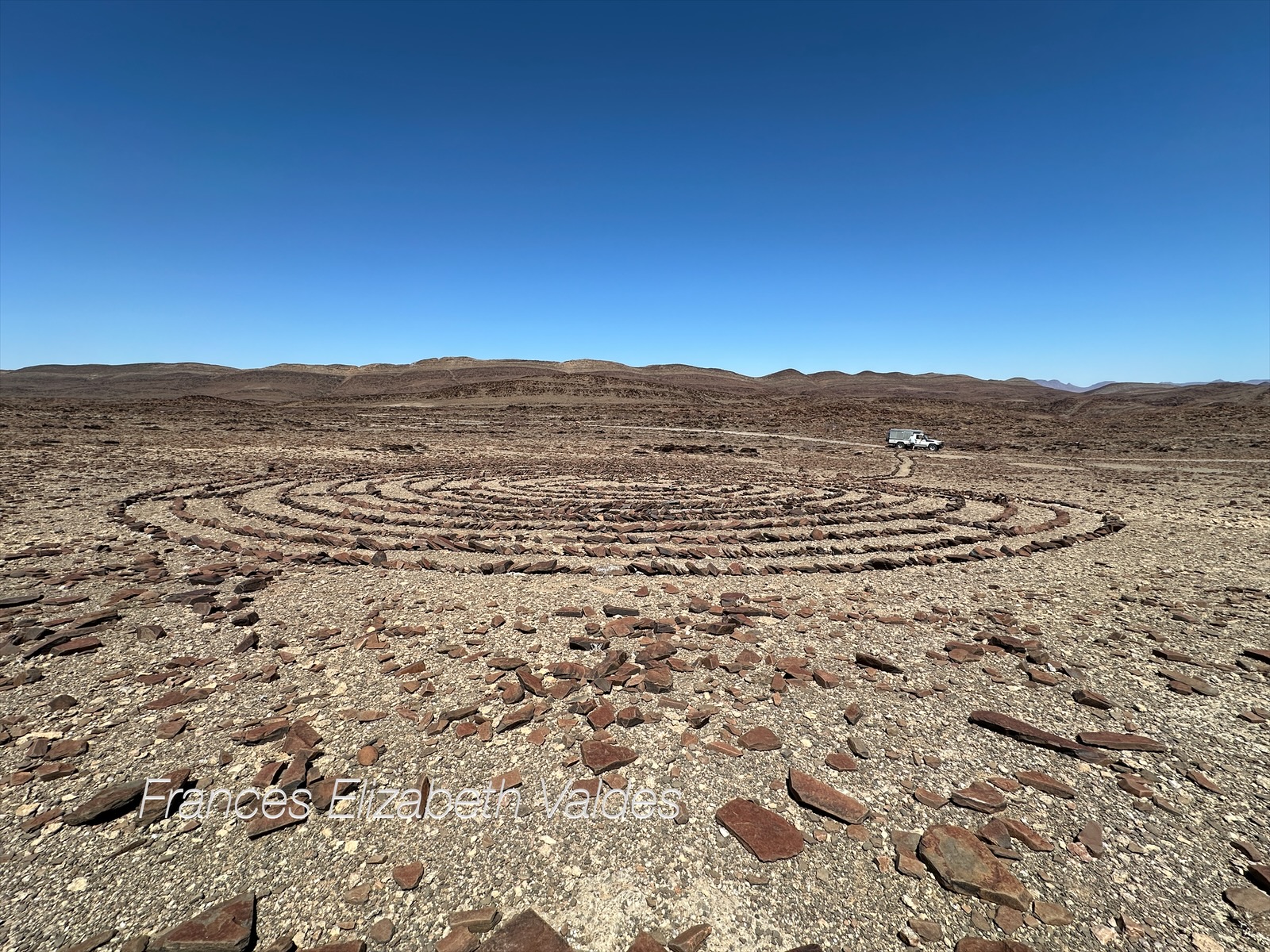 Around 2pm we had finished lunch, I was looking at something out the window of the car, and suddenly spotted the labyrinth. It was a good three to four hour drive from any campsite or habitation, over difficult 4 x4 4 tracks. It can not have many visitors. I do not know who created it, or the story behind it. It was the ultimate folly, but in this climate a stone will stay put for centuries. Whoever made it, has left a long term legacy. I had read about it in a Namibian 4 wheel drive Facebook page, and it was marked on google maps (although that hadn’t helped us find it!).