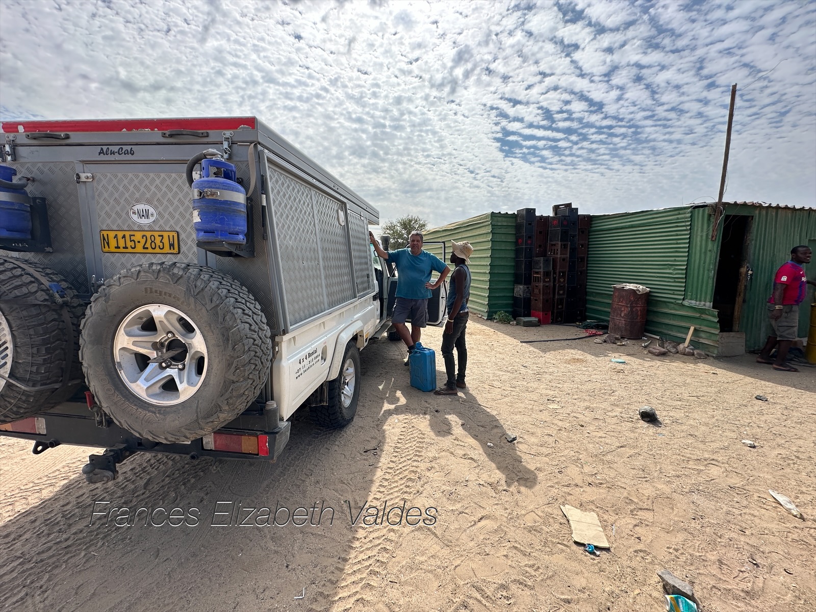 The village had been shown on the Tracks4Africa app as having fuel. We were beginning to get anxious that we didn’t have enough. Well the anxiety was more mine than Nigel’s because I’m a worrier. In 2020 they had a large drum with diesel in it. The owner of the drum poured diesel into a container to pour into our car. Nigel was very careful that the container was clean, so we didn’t introduce dirt to the fuel tank.