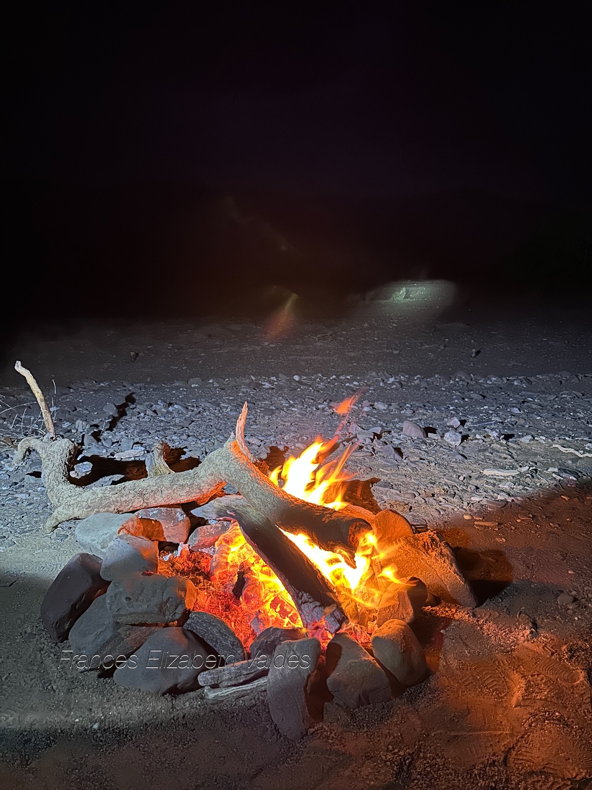This photo not only shows the essential of wild camping – the camp fire; but it also show one of Nigel’s motion detectors having been set off (above the fire on the right). It was probably set off by ash from the fire although next morning we would discover what else had set them off in the night!