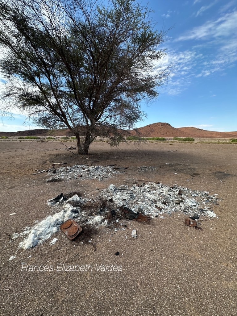 We drove past Blackridge, with its beautiful but windy views. We decided to give Kharokhaob Plains a miss, as we had explored it quite well on the way out. Because we weren’t going to Kharokhaob Plains we took a slightly different route, and in the distance saw something rather odd under a tree. We had to drive off the track to find out what it was.