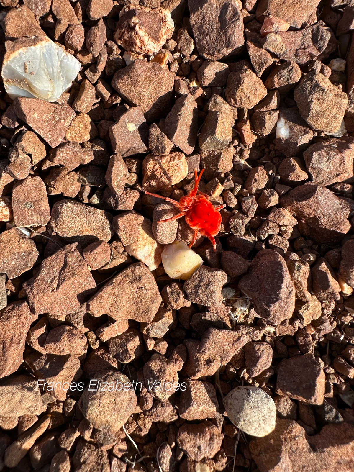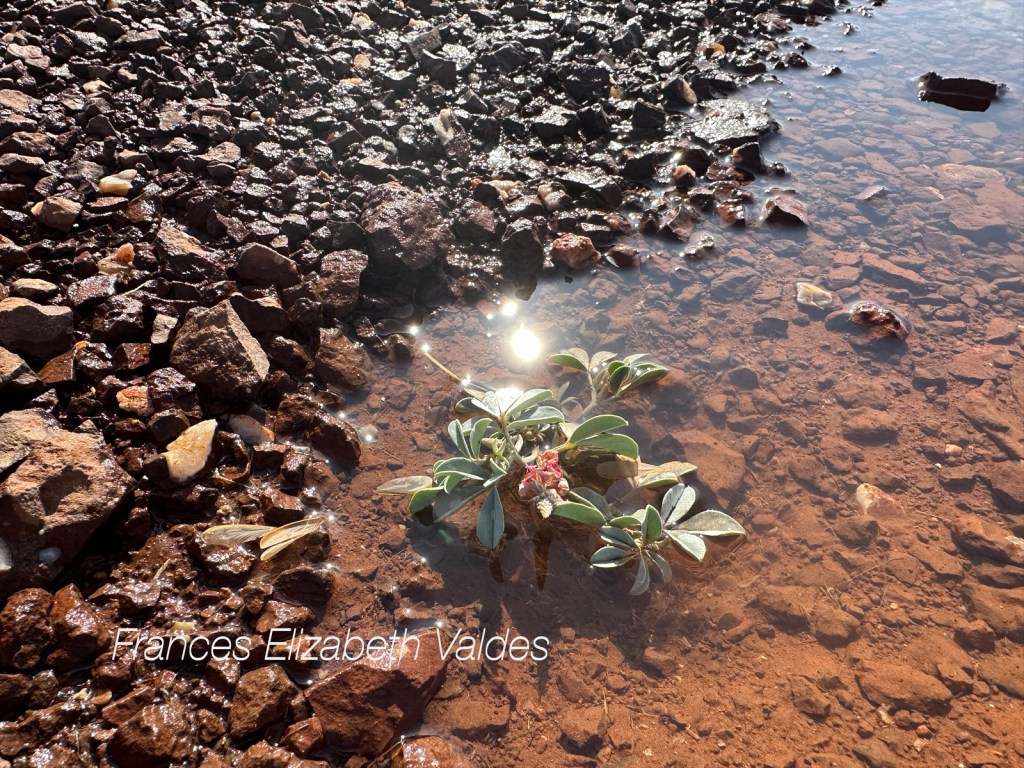 The ground seemed mostly dry, although there were a few puddles. A plant in the puddle had a flower on it. I’d not seen a flower in the desert before, and was amazed at how quickly the plant had reacted to the rain. There were some unusual red bugs. I later learnt they were called Dinothrombium or red velvet mites. They are known for coming out after rain, and for their red colouring which is a warning of their unpleasant taste and smell (so says Wikapedia although I wonder who found this out).