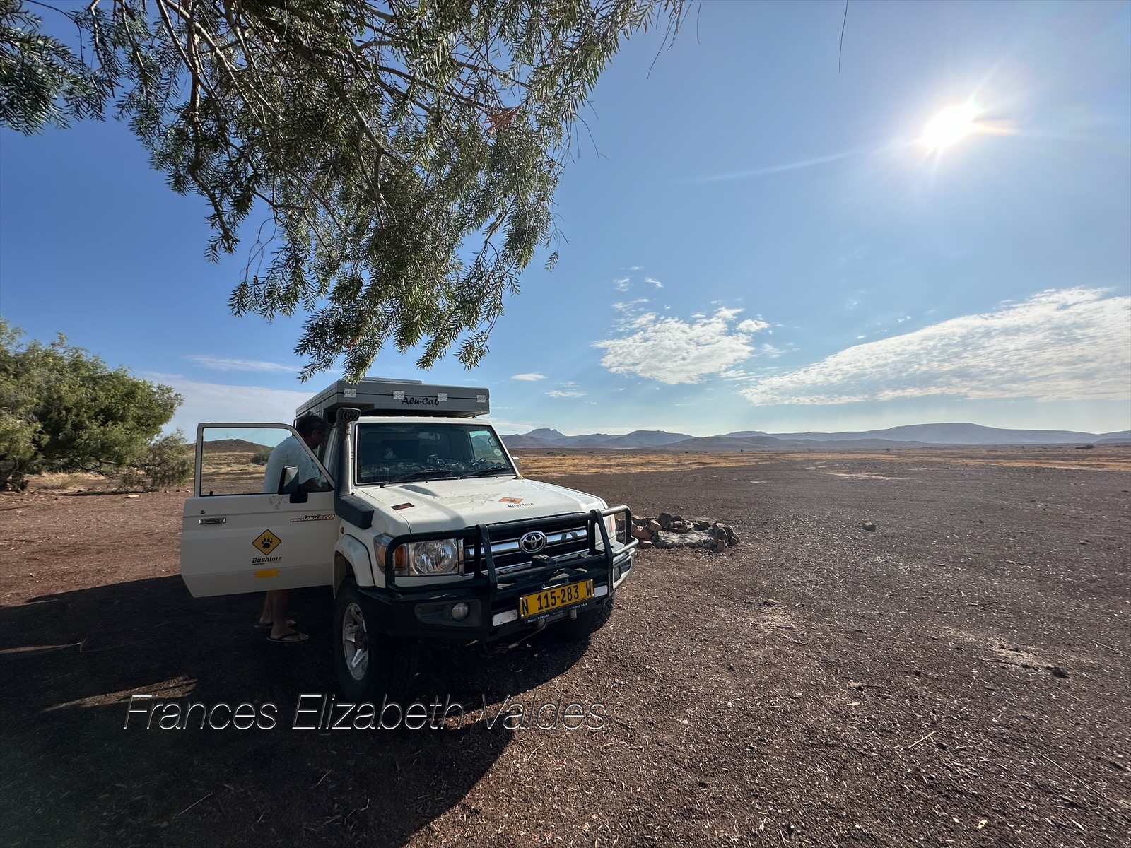 Aba Huab Community Campsite was one of our favourites, which was why we were aiming for it. It was very hot when we arrived, with lots of flies. We sat enjoying the lowering sun and the slightly reducing heat. It was so hot Nigel had an early shower which did little to cool him, and he had a second shower with me.