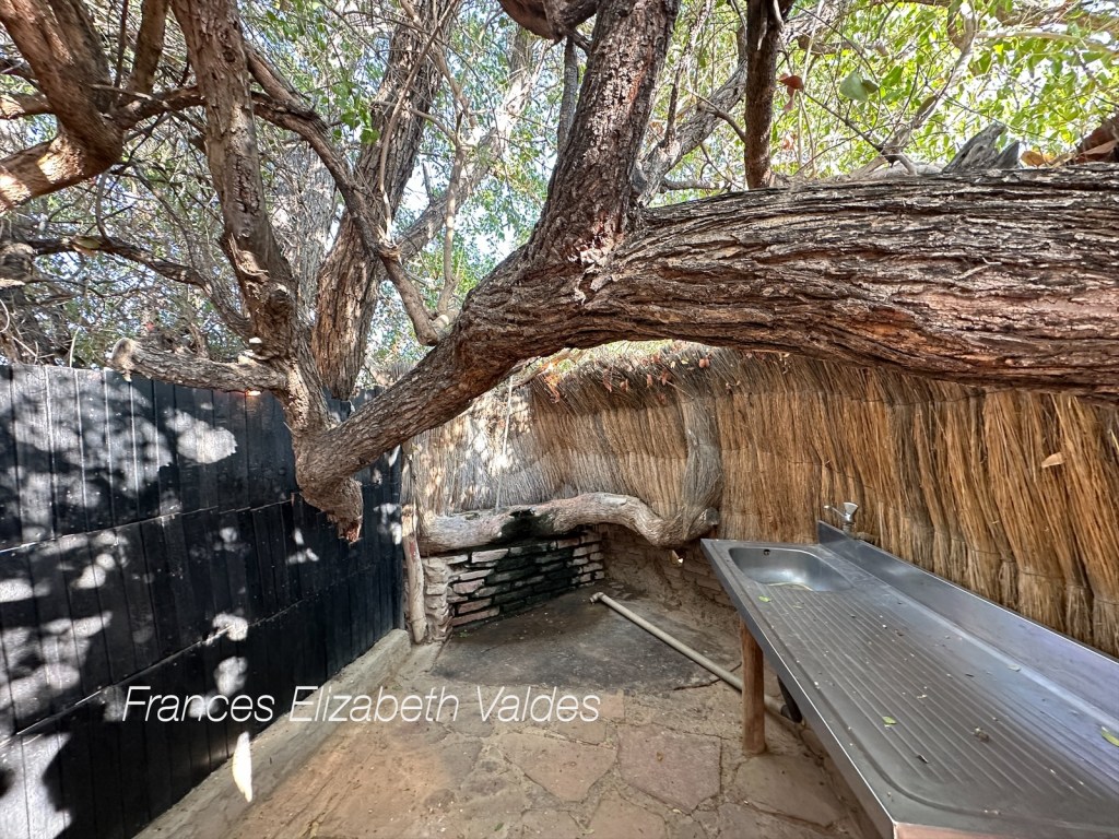 We got to enjoy a long evening as we were in a bush camp, and it was safe to be outside the camper. But, across the river bed eyes were watching us. We think they were harmless jackals, but we only ever saw their eyes glinting in the camp light.
