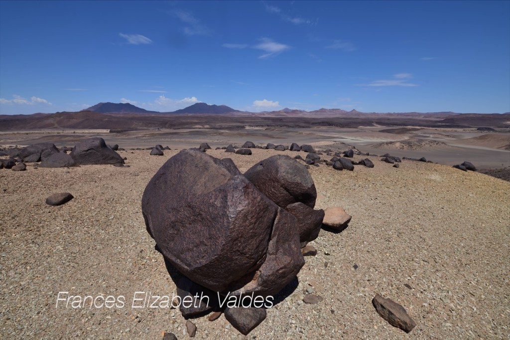 Desert Varnish is found in many desert areas of the world. A thin layer of manganese oxide or iron oxide coats the rocks causing a shine. It is a bit of a mystery as to how it forms. It seems clear the the slight moisture from the ocean fogs or dew cause the oxidisation, but its not sure where the manganese or iron come from – its not the rock. Manganese is quite rare and one theory is that there is a biological agent – a microbe at work.