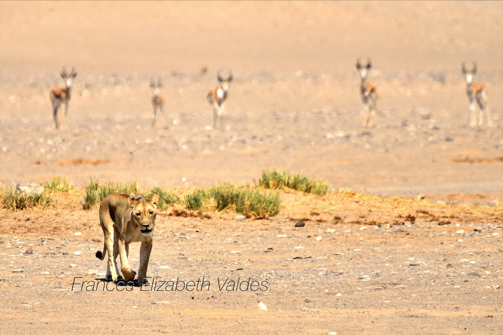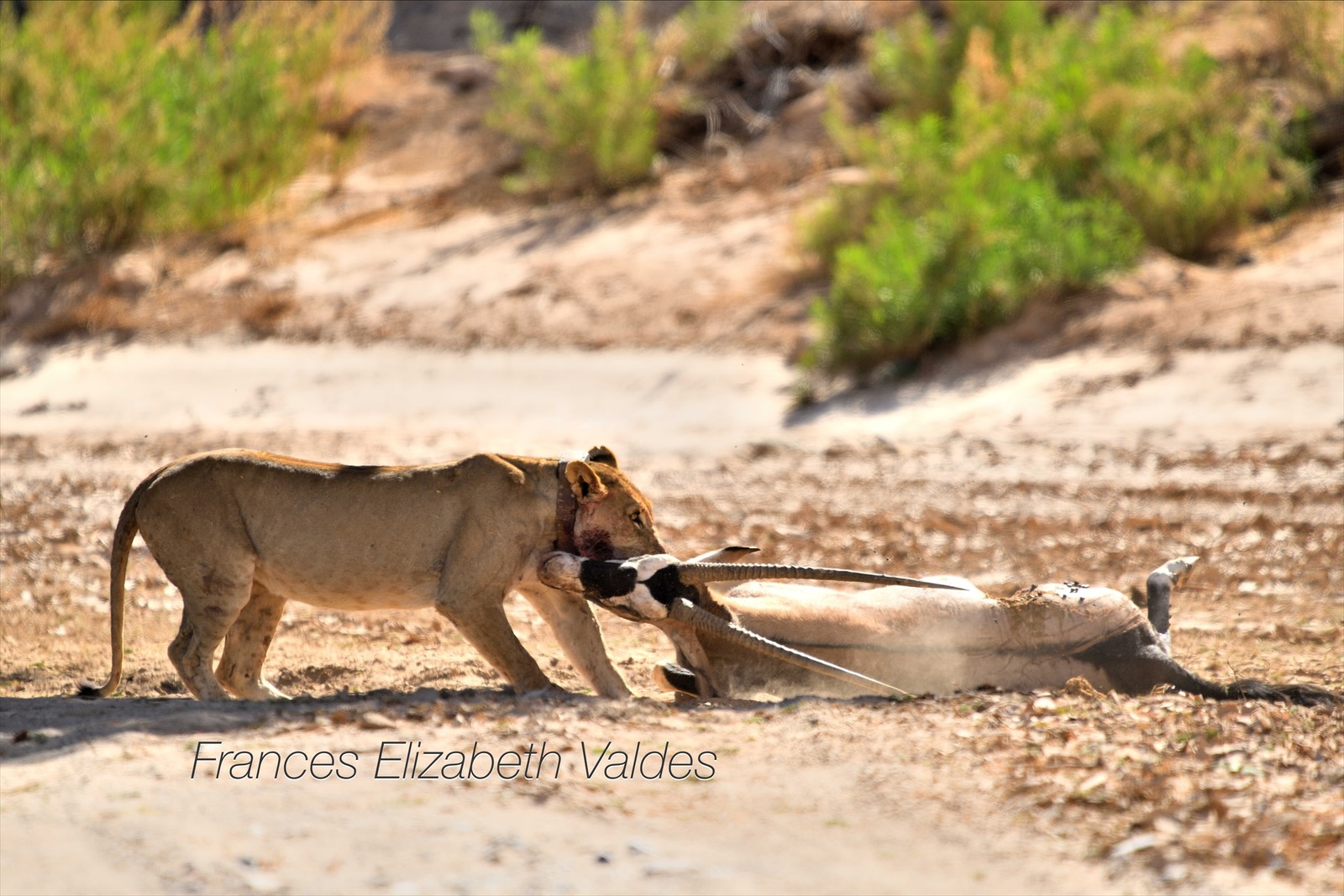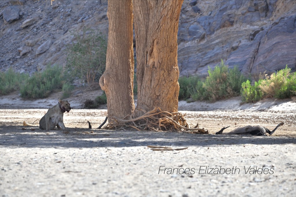We followed the lion when she left the waterhole and discovered she had just killed an oyrx.