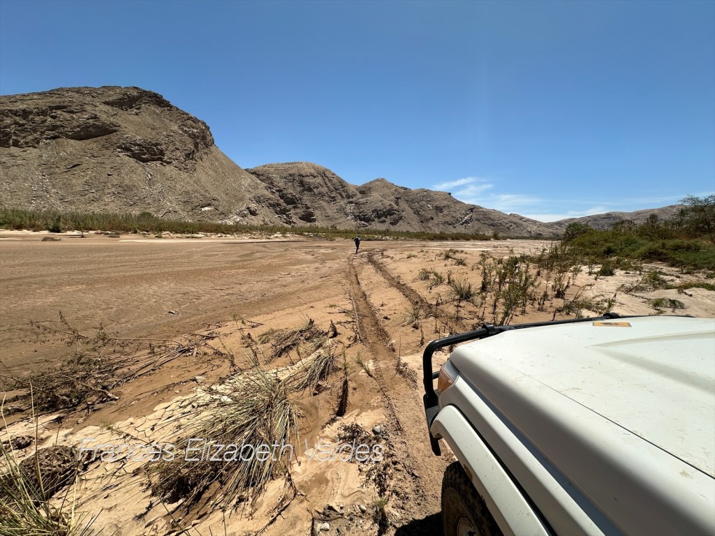 The new improved water pump did not allow us to fill up our water tanks. We weren’t sure if we were going to a wild camp that night, but this made up our mind. We would drive up the Hoanib, and camp at the bush camp with showers at the other end.