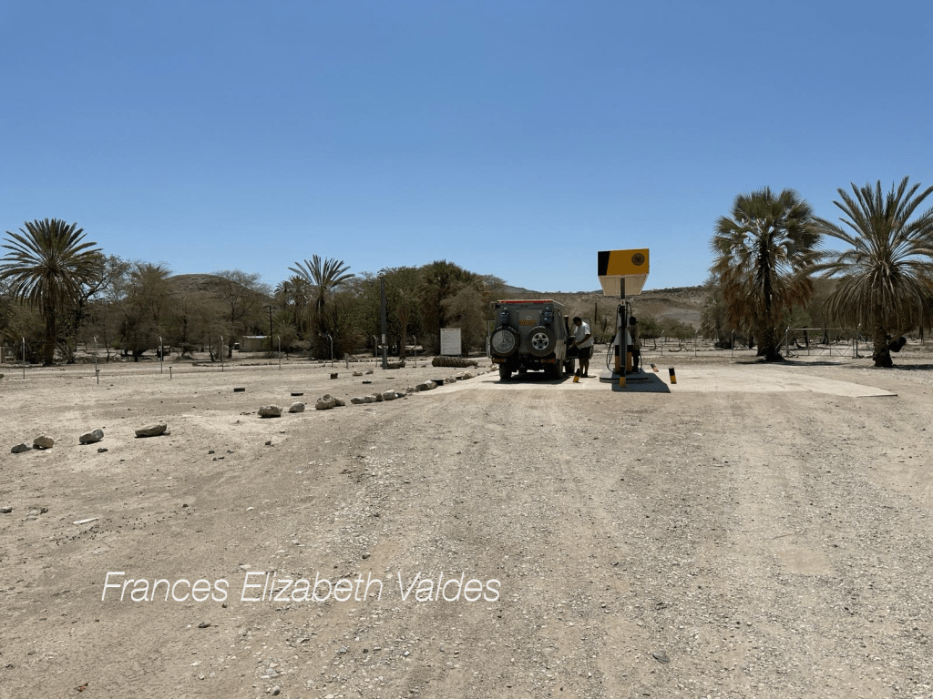 We got fuel and then went to Sesfontein Fort. This was an old German fort which had been turned into a lodge. It had a spring and Magnus had asked us to fill up his drinking water bottles there.