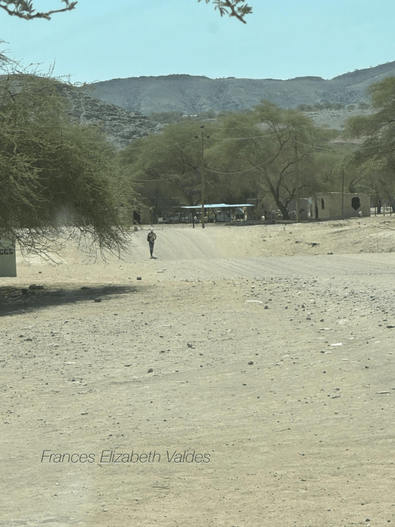We drove through the sandy Okambonde Plains for an hour or so, and came to the ‘main’ dirt road leading from Sesfontein to Purros (more of which later). We knew Sesfontein reasonably well, not only from our 2020 visit, but also from when we had stayed in a beautiful lodge a little way from it in 2019. The town seemed smaller and less lively than before. There were signs of increased poverty everywhere. The people were so thin, and we thought there were both less shacks and less people.